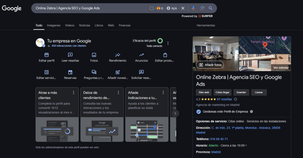✅El estado de tu perfil de Google Business Profile (anteriormente Google My Business). Ejemplo: Una clínica dental en Madrid tiene un perfil en Google Business Profile sin fotos, con horario desactualizado y sin responder reseñas. Un consultor SEO local optimizaría el perfil añadiendo imágenes, descripciones con palabras clave, categorías correctas y fomentando la gestión de reseñas.